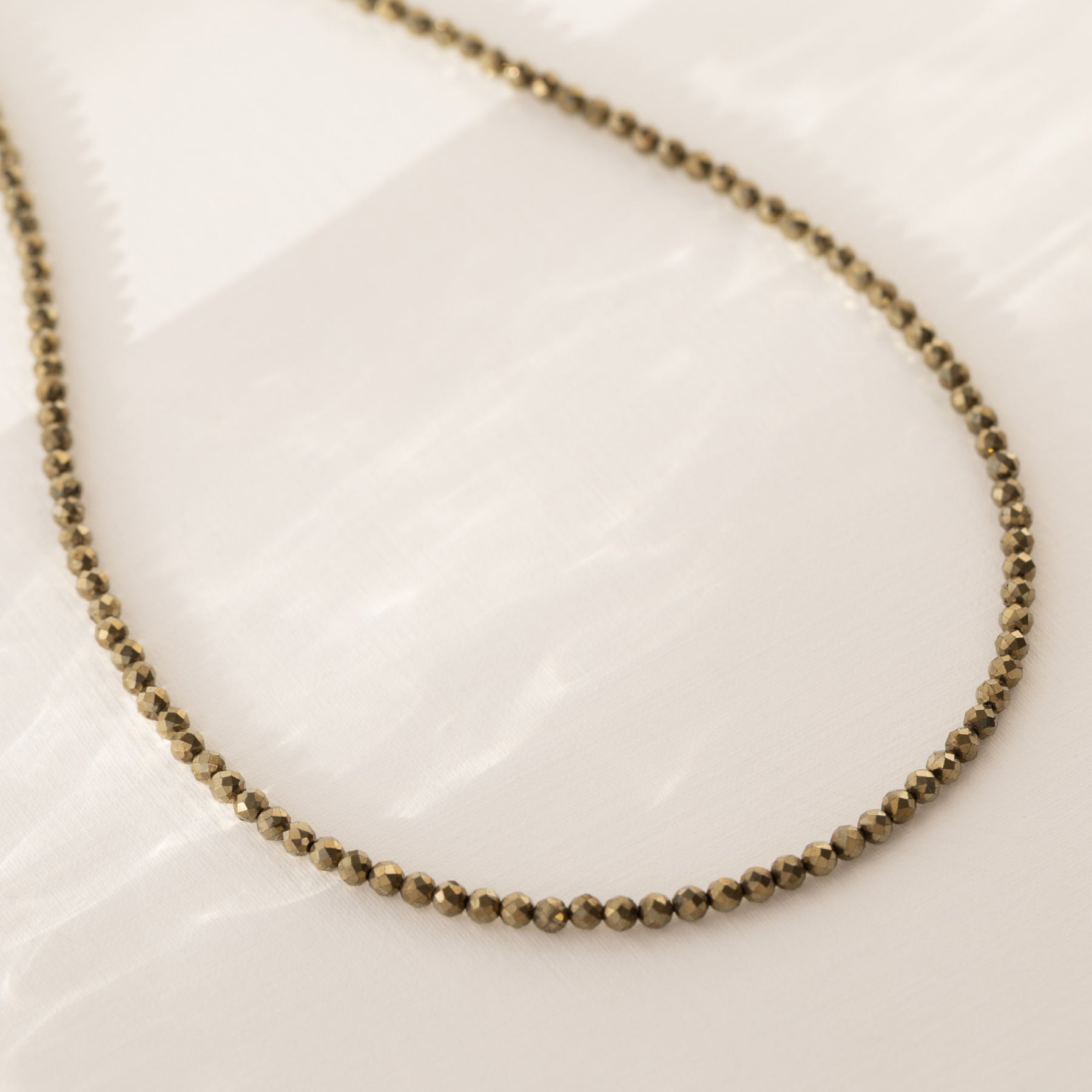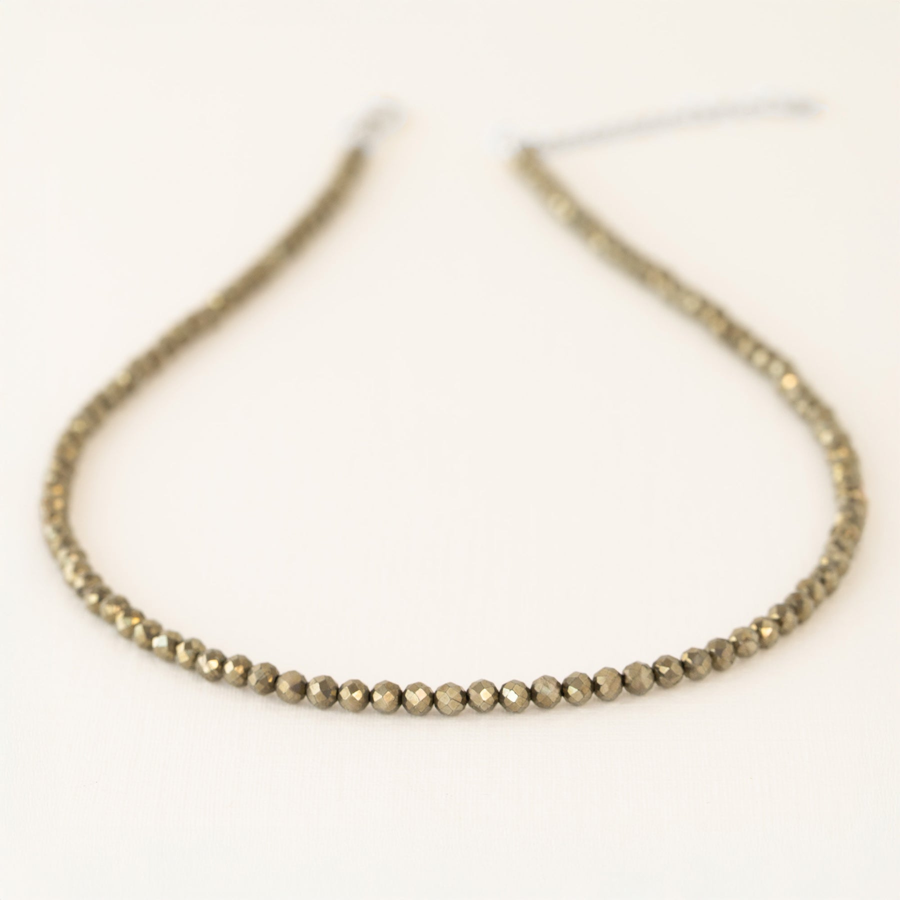 Enhance your style with our Iron Pyrite Bead Necklace, a striking accessory perfect for any occasion. Crafted with genuine iron pyrite beads, this necklace offers a touch of elegance and sophistication. Available in three size options, it provides versatility to suit your personal preference. Whether you're celebrating a special occasion or looking for a unique iron anniversary gift for the 6th year, this Iron Pyrite Bead Necklace is sure to make a statement.