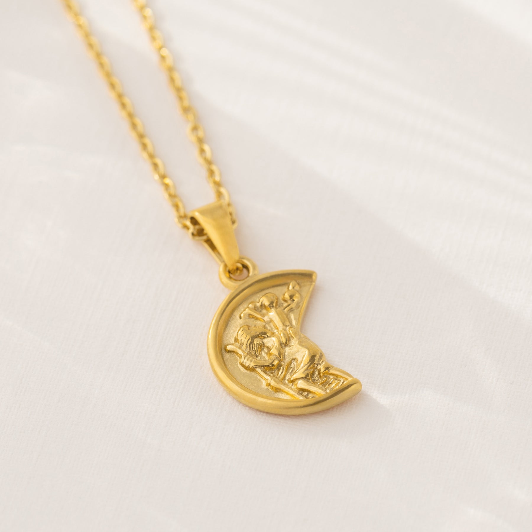 A modern Saint Christopher talisman for protection, guidance and safe travels — reimagined in a sleek crescent design.