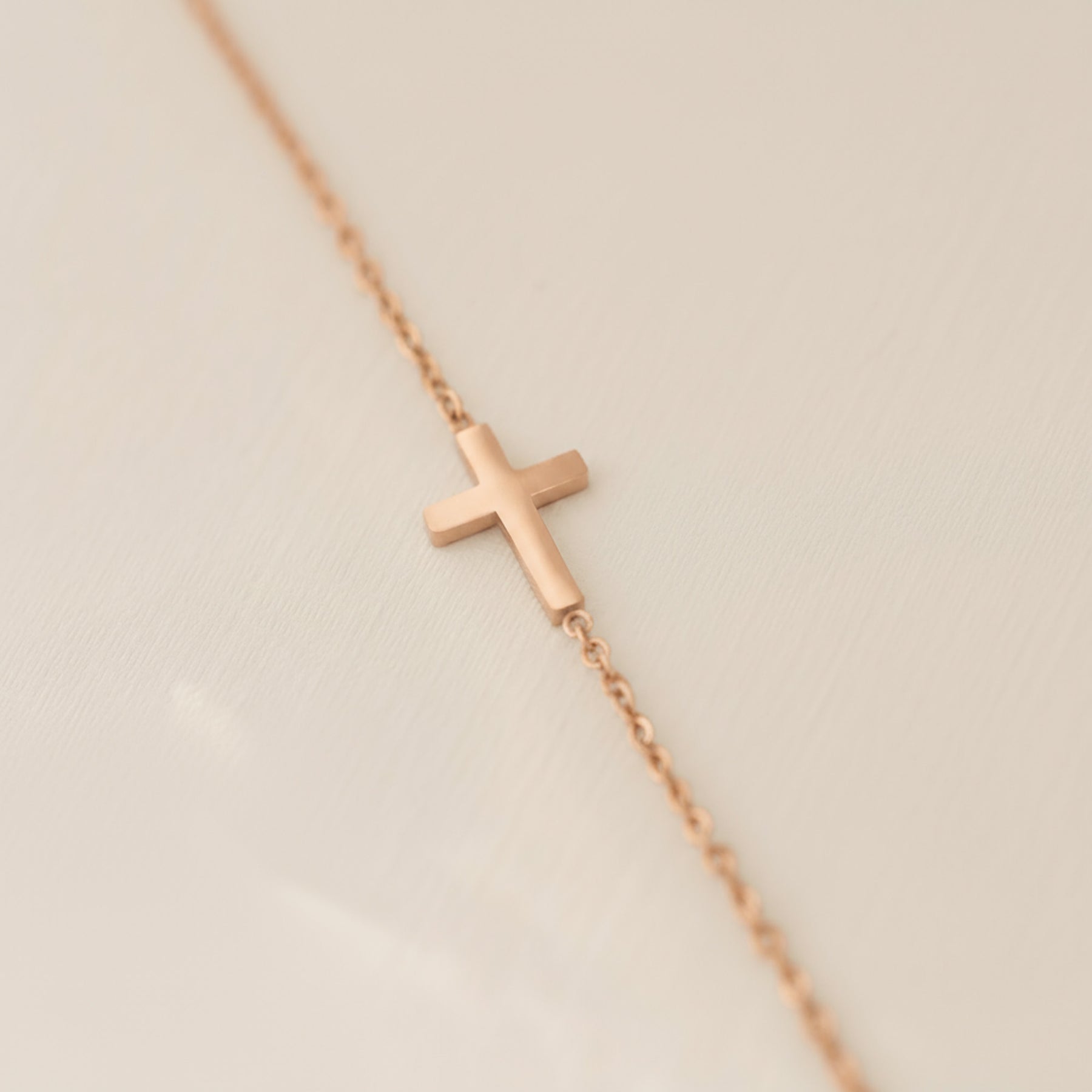 The Sideways Cross Necklace, available in both Gold and Silver, is a contemporary and elegant piece that adds a touch of modern flair to traditional symbolism. This unique design features a cross positioned horizontally and asymmetrically, offering a fresh perspective on a timeless symbol of faith.