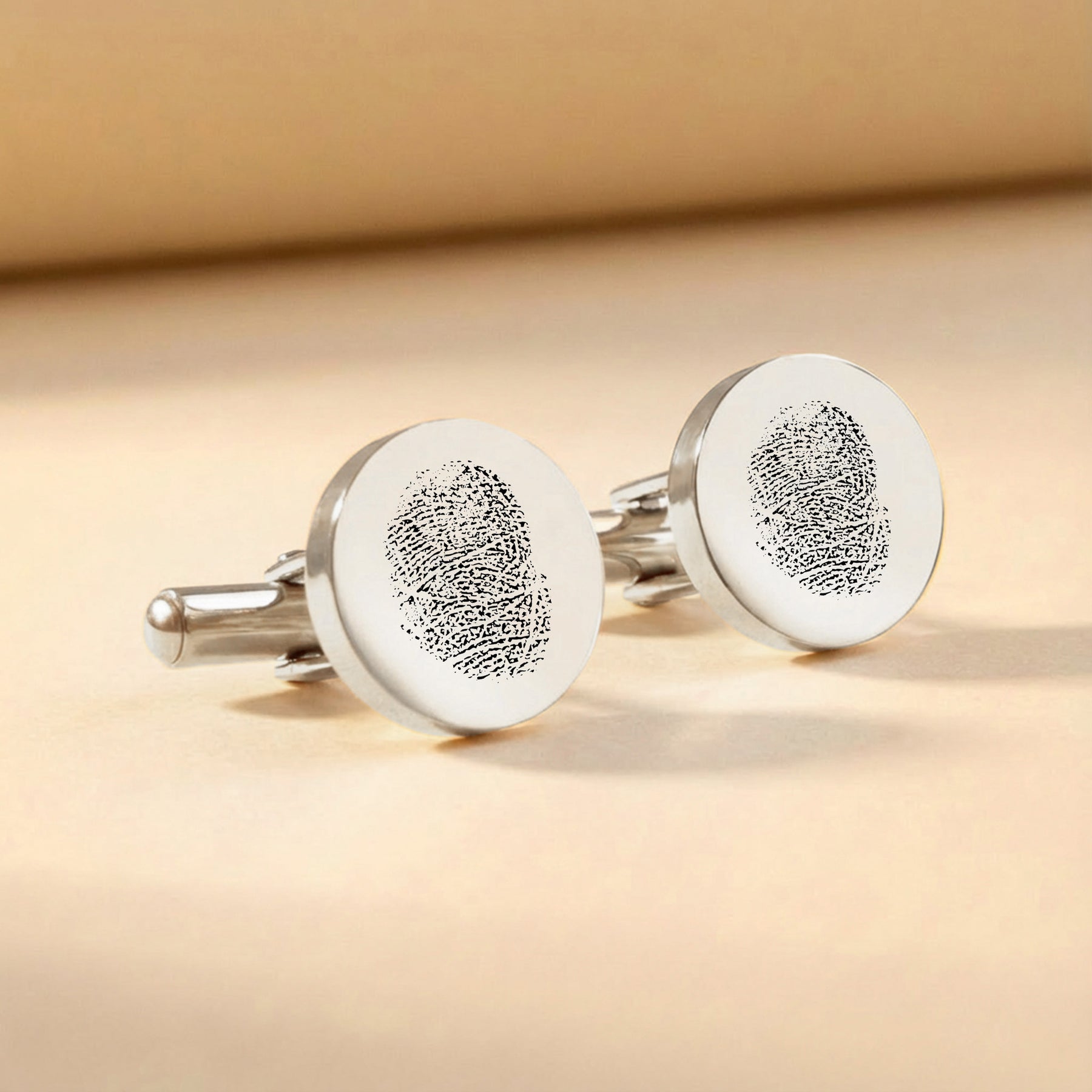 Crafted in stainless steel with a premium plated finish, our fingerprint cufflinks are available in classic silver, warm gold or modern black. Simply upload a photo of the fingerprint and we’ll carefully transform it into a clear, detailed engraving on both cufflinks.