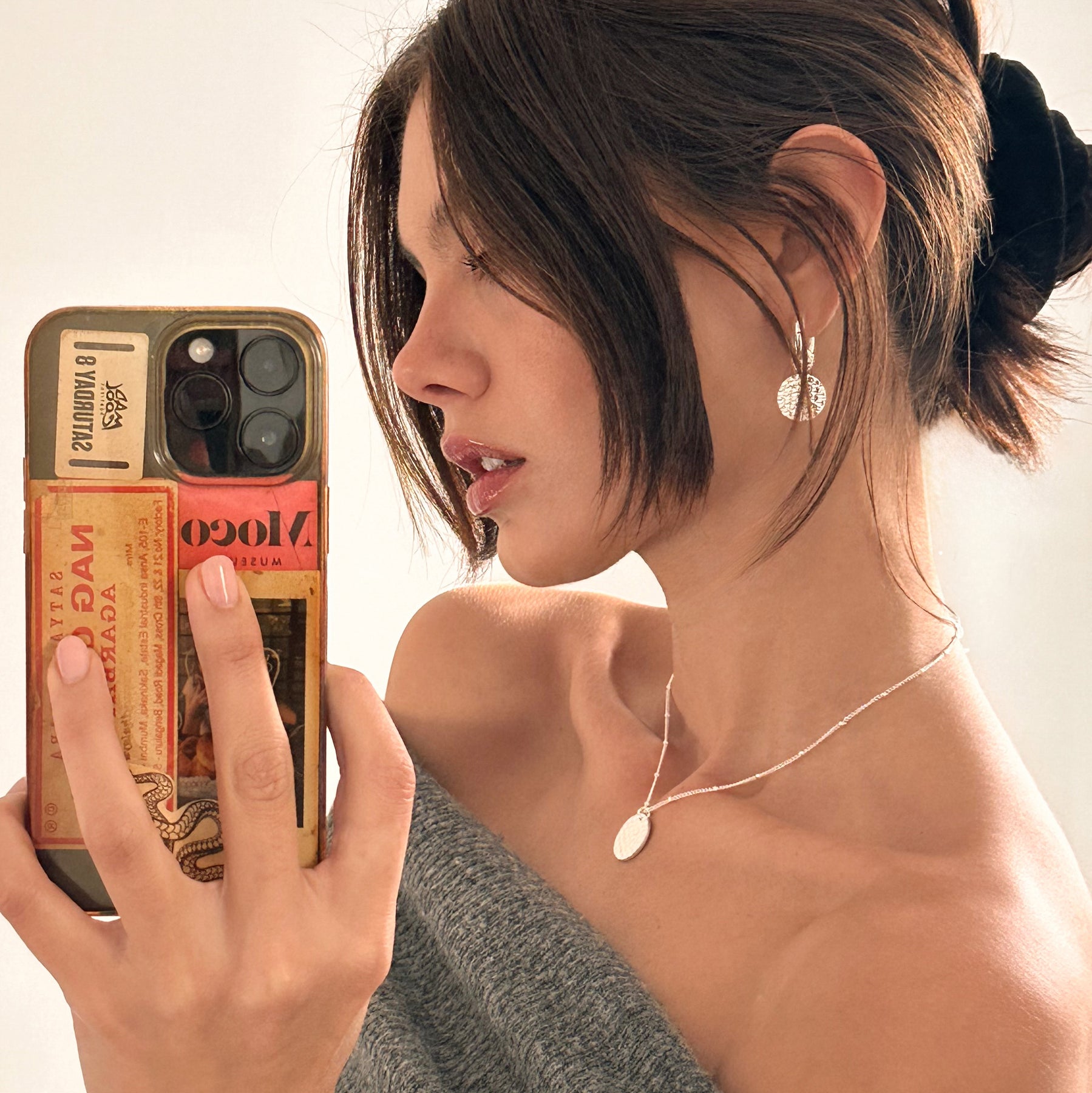 Choose a short quote, name or date to create a necklace with hidden message that rests close to the heart. Available in gold, silver and rose gold tones, the delicate beaded chain adds a refined touch, making this secret message necklace a beautiful gift for birthdays, bridesmaids or someone who needs a gentle reminder every day. This versatile necklace pairs beautifully with our matching hammered disc earrings for a coordinated and sophisticated style.