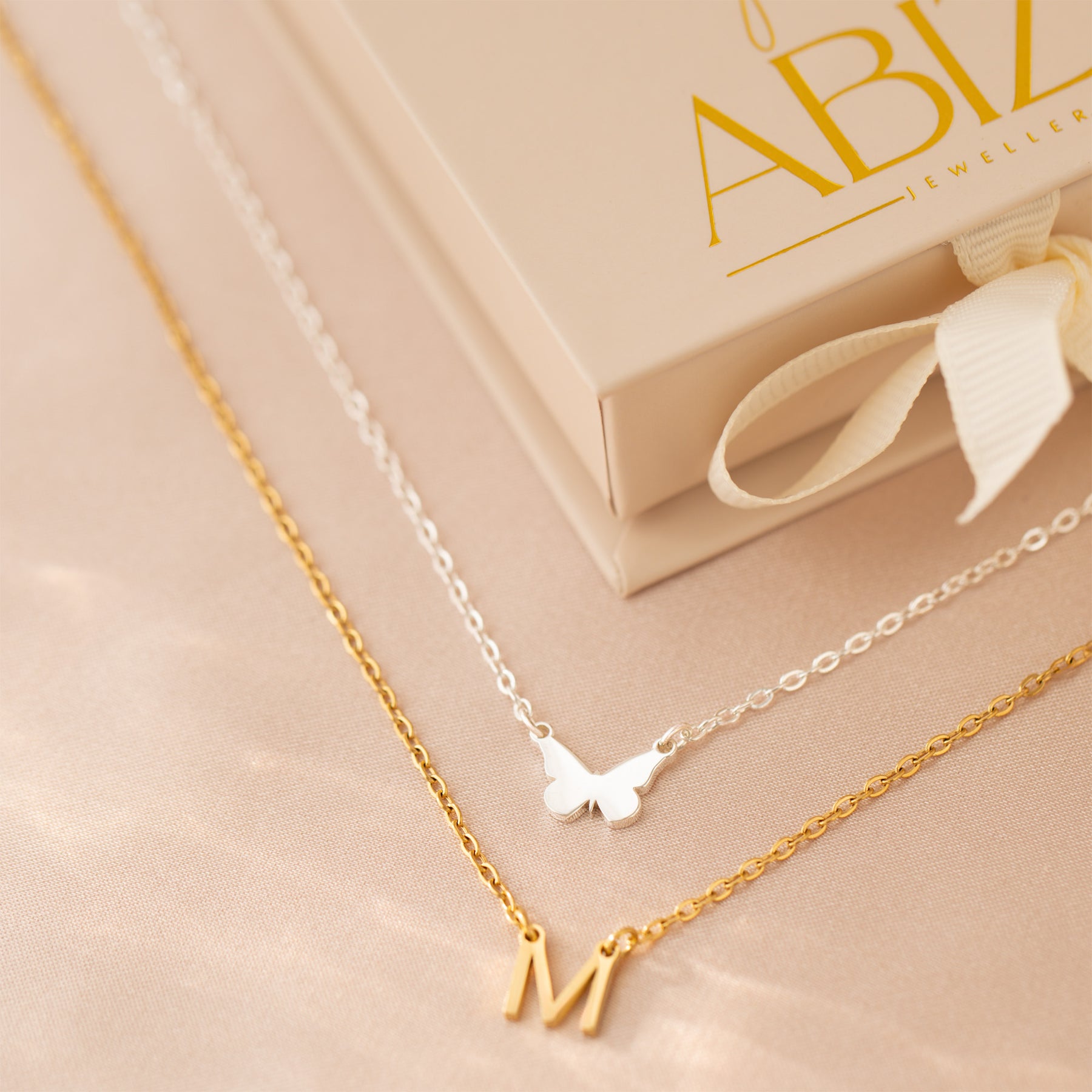 A beautifully modern name necklace featuring individually hung letters, handcrafted in gold or silver. Personalise with any name or initials for a meaningful, timeless piece made for everyday elegance.
