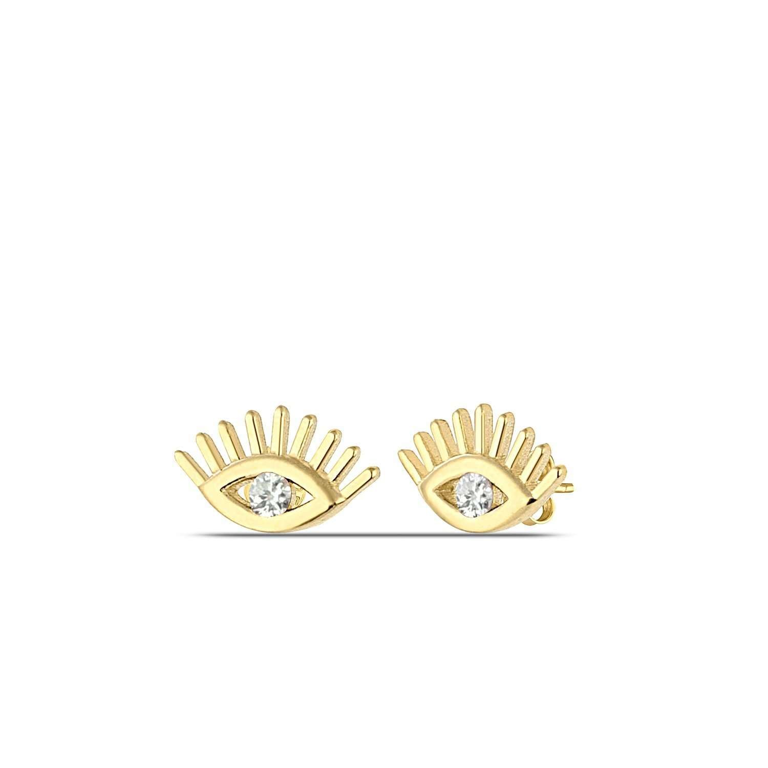 CZ Diamond Evil Eye Stud Earrings with Lashes, chic and minimalist accessories crafted to elevate your style with a touch of elegance and protection. Adorned with sparkling cubic zirconia diamonds, these eye-catching studs feature intricate lash details, adding a playful yet sophisticated flair to your look. Available in gold, sterling silver, and rose gold, these versatile earrings are perfect for wearing alone or pairing with other pieces, making them a must-have addition to your jewellery collection.