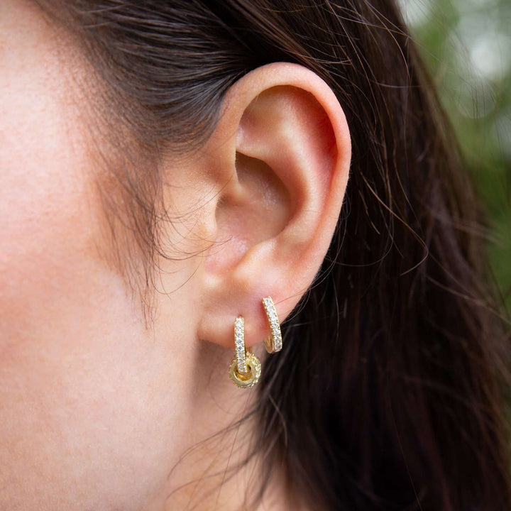 Sparkle Pave Huggie Hoop Earrings, adorned with exquisite pave detailing to add a touch of glamour to any ensemble. These versatile earrings come with detachable pave rings, allowing you to customise your look effortlessly. Available in gold, sterling silver, and rose gold finishes, offering versatility to suit your unique style. Our Sparkle Pave Huggie Hoop Earrings, designed to spark joy and admiration wherever you go.